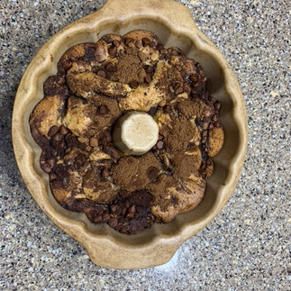 Bake the bundt for 50-55 minutes at 350*F. Let it cool in the pan for 10 minutes before unmolding. Let it cool for another 30 minutes.